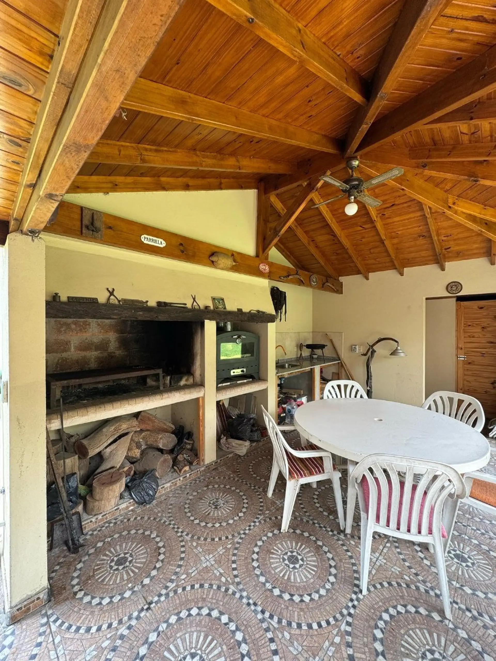 En el exterior de la casa se encuentra el cuarto de herramientas, Toilette, parrilla con horno pizzero, quincho, pileta tipo tanque australiano. Tiene los planos aprobados para construir una pileta tradicional.